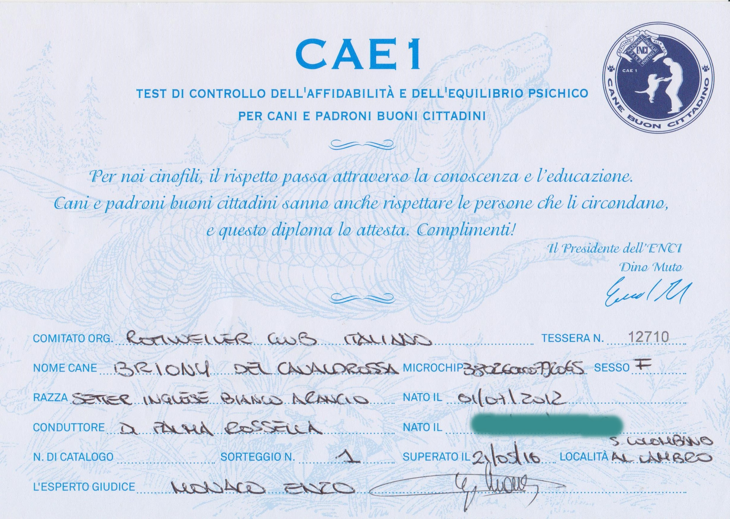 Ch.It.B/ R.S. Briony del Cavaldrossa (CAE-1) Altezza 58 cm