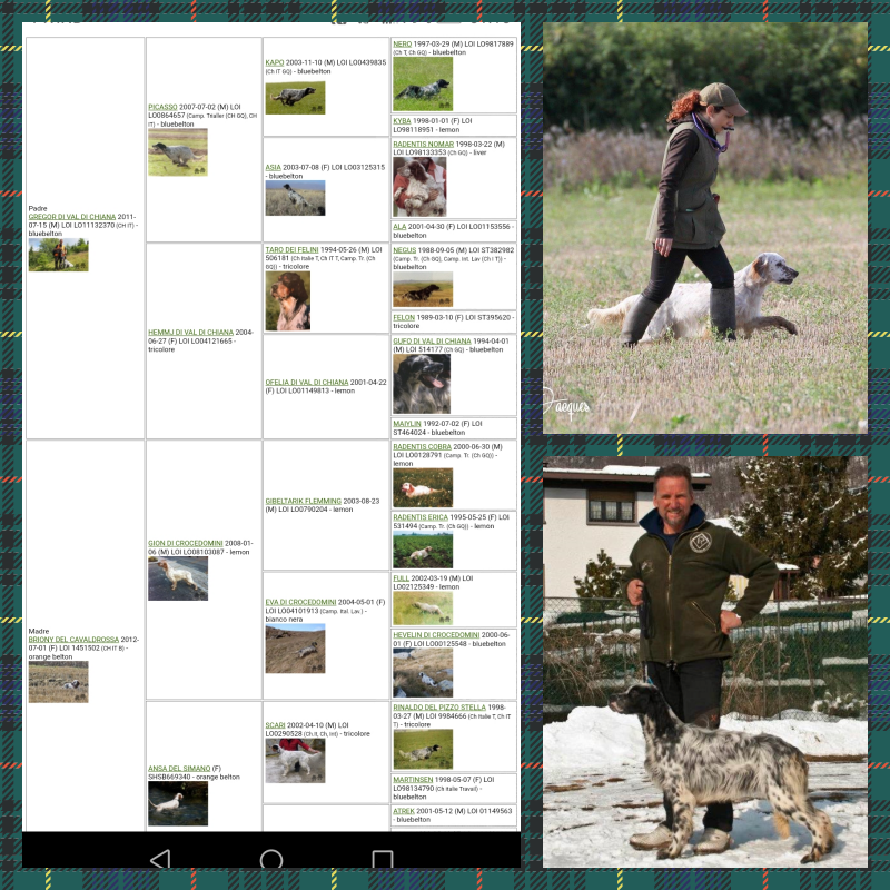 Ma limitiamoci a parlare dei cuccioli. I cuccioli B sono figli della mia Briony del Cavaldrossa (Ch. Italiano di Bellezza, qualifiche in prova e vincitrice di una prova su starne a Sandrigham, terreno di proprietà di Sua Maestà, la Regina Elisabetta II d’Inghilterra). Il padre è Gregor di Val di Chiana, Ch.Italiano Lavoro, Ch. Internazionale Lavoro, Ch. Europeo su Selvaggina di Montagna, pluri CAC in raduno. Perché ho scelto Gregor lo potete scoprire leggendo qui ma, in buona sostanza, non è stata una scelta fatta a cuor leggero, o avrei preso il primo setter disponibile dietro casa. L’intento era quello di portare avanti la linea della mia cagna mettendo alla luce cuccioli sani, tipici, equilibrati e con ottime attitudini venatorie. L’Italia sarà pure la patria del setter inglese, ma trovare in un cane tutte queste caratteristiche insieme non è scontato: in coscienza ho cercato di far sì che accadesse. Chi non vorrebbe avere accanto un cane simile? Un cane collegato, che sa dove sei e non si perde, un cane equilibrato, bello da guardare, nonché un piacevole compagno di vita?