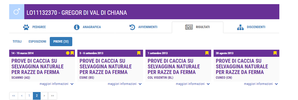 Gregor was breed by Ademaro Scipioni and is now owned by Domenico Pensa, who hunts with him on the Alps. He also trained him and handles him in mountain trials. Thanks to these trials, Gregor became Italian FT Ch., International FT. Ch. and European FT.Ch. 2014 (mountain trials). Beside this, Gregor has a very nice conformation and has already gained 2CC and 2 RCC at shows. Gregor is an Italian KC Selected Producer.